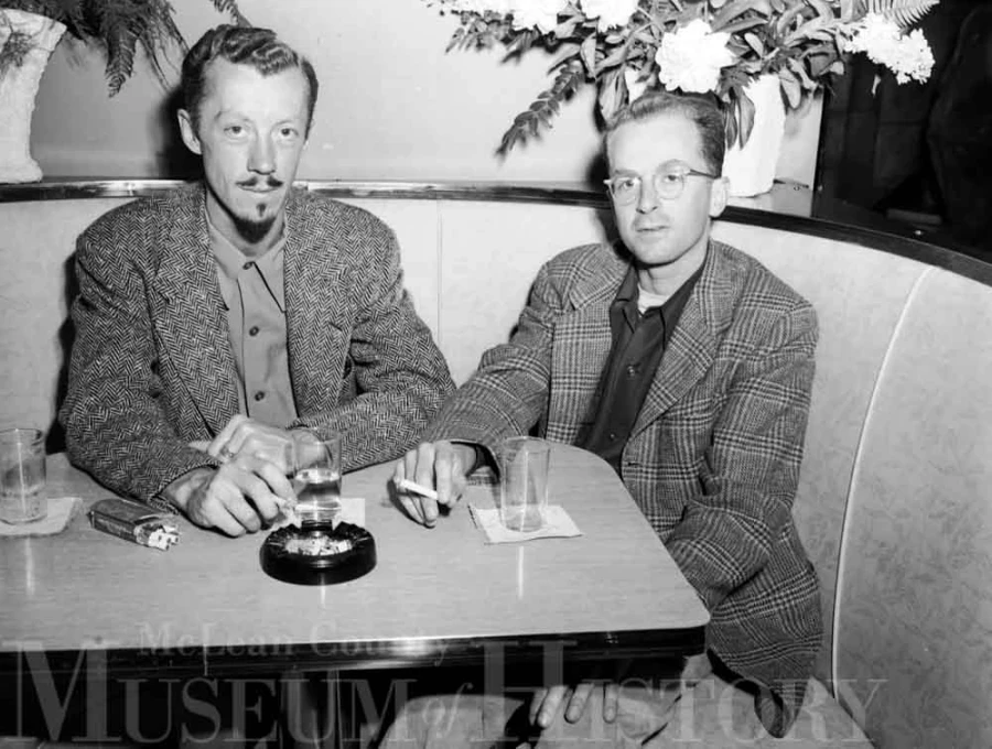 Artist Bob Hooton (left) and writer Dan Wickenden, both fresh from an extended stay in the Central American nation of Guatemala, arrived in Bloomington in mid-May 1948. Hooton, the son of Bloomington architect Phillip Hooton, intended to stay in the Twin Cities for the summer. Wickenden planned to return to his home in Connecticut. Two years later, the dust jacket cover of Wickenden’s novel “The Dry Season” would feature a Hooton painting.