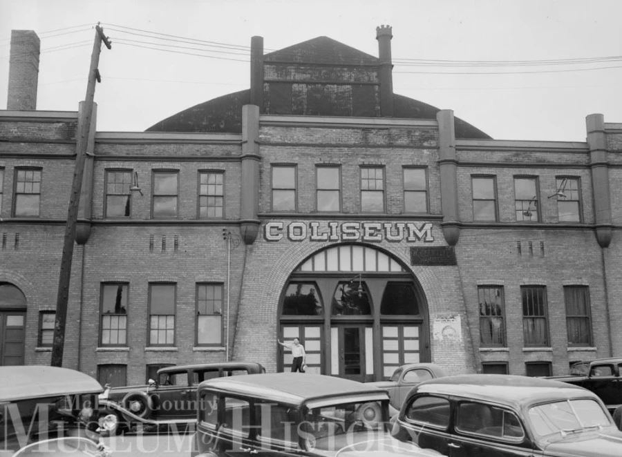 Opened in December 1898, the Coliseum was a field house-type structure with phenomenal acoustics. It hosted everything from famed sopranos to Jazz Age dance bands. Located on the 400 block of West Front Street, the site today is … what else but a surface parking lot! Interestingly, the old Coliseum stood directly across Front Street from the “new” (now 10-years old) U.S. Cellular Coliseum. This photograph dates to the summer of 1938 when Pat Harkins purchased the building and turned it into a 12-lane bowling alley. The old Coliseum was torn down in April 1961.