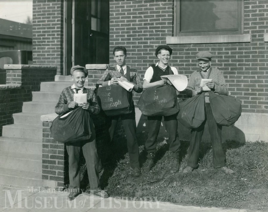 These spiffy letter carriers pose in front of the pre-1932 downtown Bloomington post office, which was located at the northwest corner of East and Jefferson streets. Many old timers will remember the successor post office, which opened in 1932 on the 400 block of N. East St., and is today part of the Second Presbyterian Church complex
