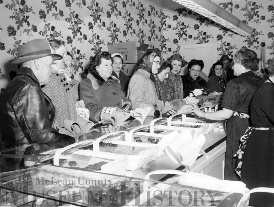 Seen here are shoppers out and about downtown Bloomington in mid-December 1953. This location, as well as the folks shown here, are unidentified. Can anyone help us out?