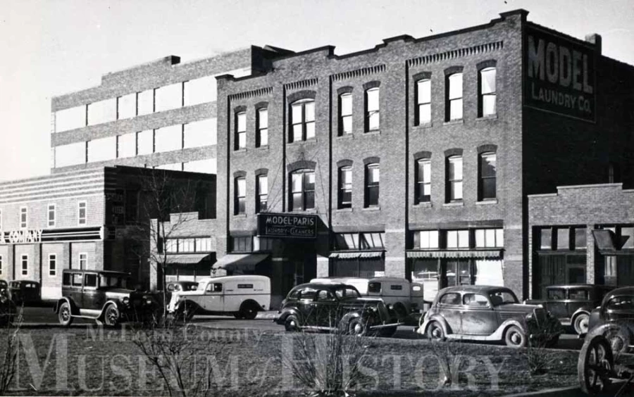 Back in 1938, Model-Paris Launderers & Cleaners had two location in the Twin Cities: 208-216 E. Market St., seen here, and the corner of Beaufort Street and Broadway Avenue in Normal. The Model-Paris building shown here is long gone. Today the old building site is—what else!—a surface parking lot.