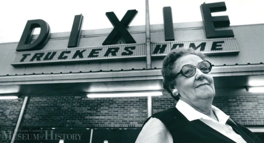 A 75-year-old Nelva Menzel, longtime waitress at the Dixie Trucker’s Home, is seen here in late 1981. By this time she had already put in 32-plus years at the Route 66 landmark in the Village of McLean, located some 15 miles south of Bloomington. In October 1980 she met Ronald Reagan, whose campaign bus stopped at the Dixie. Another time she waited on bandleader Guy Lombardo and his entire orchestra, and she frequently served shackled prisoners being transferred by the Illinois Department of Corrections. Nelva passed away on March 24, 1989, at the age of 82. The new “Cruisin’ with Lincoln on 66” Visitors Center, located on the ground level of the McLean County Museum of History, opens this Saturday, April 25, at 10:00 a.m. As your ticket to the Mother Road, the new center will offer information on Route 66 sites, restaurants, parks, and attractions. We hope to see you there!