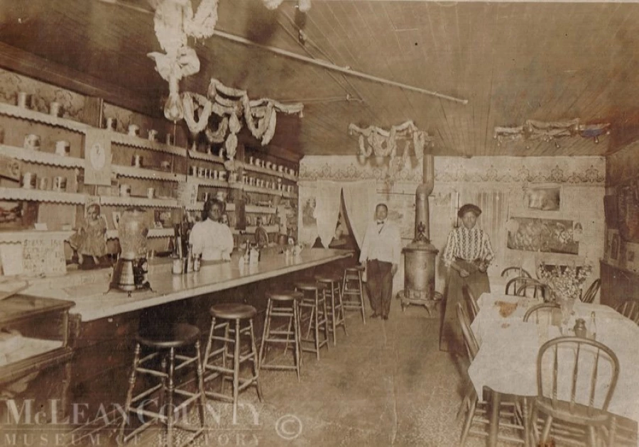 Born in Little Rock, Arkansas, in 1878, Isaac Joshua Beasley Sanders came to Bloomington sometime in the 1890s. “Ike" Sanders and his first wife Allie Headley opened what's believed to be the first restaurant in Bloomington owned and operated by African Americans. The restaurant, which also doubled as a rooming house, was located at 306 South Main Street. Ike and Allie served the needs of both white and black patrons. This one-of-a-kind business closed in 1911 when Lillian passed away. Seen here are Allie Headley Sanders (behind the bar); Ike Sanders (in the middle); and Ike's sister Lillian (on the right). Sanders moved away but came back to Bloomington around 1915, and soon returned to the restaurant / rooming house business. His last ongoing concern was known as the Workingman's Club, first located on South Main Street and later 1101 West Washington Street on the city's far west side. Ike's second wife Lou Anna Brown helped run the business, which closed in 1919. Ike Sanders was featured in the Museum's 2012 edition of the Evergreen Cemetery Walk. Visit this link for a detailed look into Sanders life as a pioneering Bloomington businessman.
