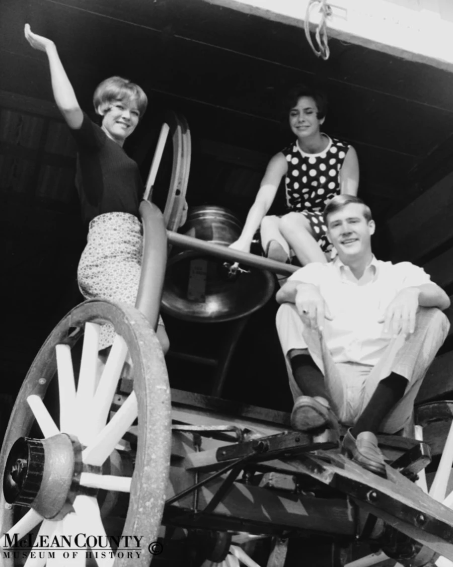 Back in the 1960s when Illinois State University and Illinois Wesleyan University still played each other in football, pranks were common among the more mischievous members of the respective student bodies. For instance, several days before the September 23, 1967 game, IWU boosters "boosted" the Illinois State Victory Bell from its locked garage on the Normal campus. It was then clandestinely moved to the Wesleyan campus and chained to the old science building. Seen here are ISU students Janie Adamson (left), Pat McInnis, and Dave Raymond celebrating the safe return of the bell to Normal. The Redbirds went on to trounce the Titans three days later by a score of 27-7. The storied Twin Cities rivalry came to an end after the 1969 season due to the increasing disparity in player size, strength, and athleticism. From 1946 onward, Illinois State went 20-3-1, winning 15 of the last 17 in the series and outscoring the overmatched Titans 88-13 in the final three contests. The Illinois State Victory Bell still leads the football team onto the field before each home game, and is rung after each touchdown and victory. The Redbirds are at home this Saturday against the Panthers of Eastern Illinois University. This is the 103rd meeting of the storied rivalry now known as the Mid-America Classic. Kickoff is at noon.