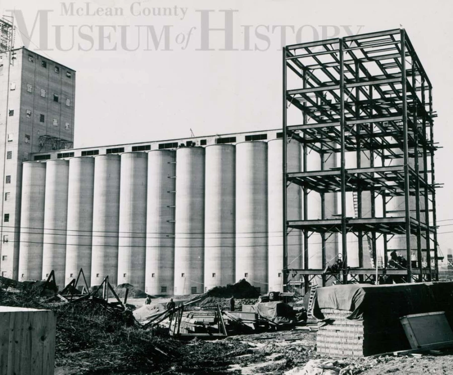 In 1948, Ralston-Purina Co. opened a soybean processing plant at 1700 W. Olive St., on Bloomington’s west side. Soybean oil from this plant was used in a variety of animal feeds. The plant was sold to Cargill,. Inc. in the mid-1980s, and it remains owned by the international food conglomerate today.We do not know the date or approximate date of this photo. If you can help, please contact Museum librarian Bill Kemp at BKemp@mchistory.org.