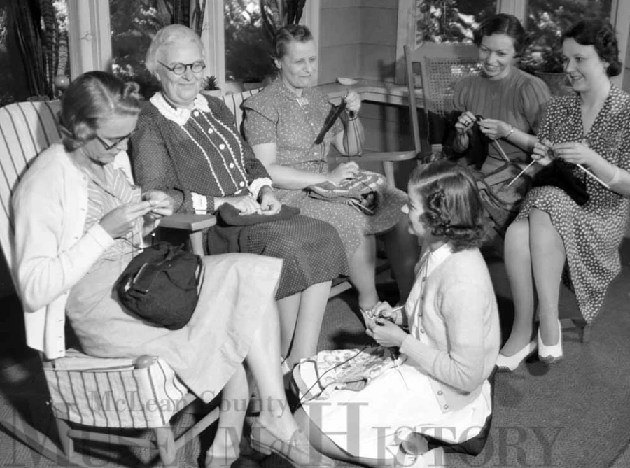In the summer of 1940, Marietta Howard, McLean County Red Cross executive secretary, issued an “S.O.S.” for local knitters. The local chapter hoped to soon knit 200 sweaters and other items for its war relief program. We’re not sure who’s who here, or where this scene takes place. If you can help us out with any identification, we’d sure appreciate it.
