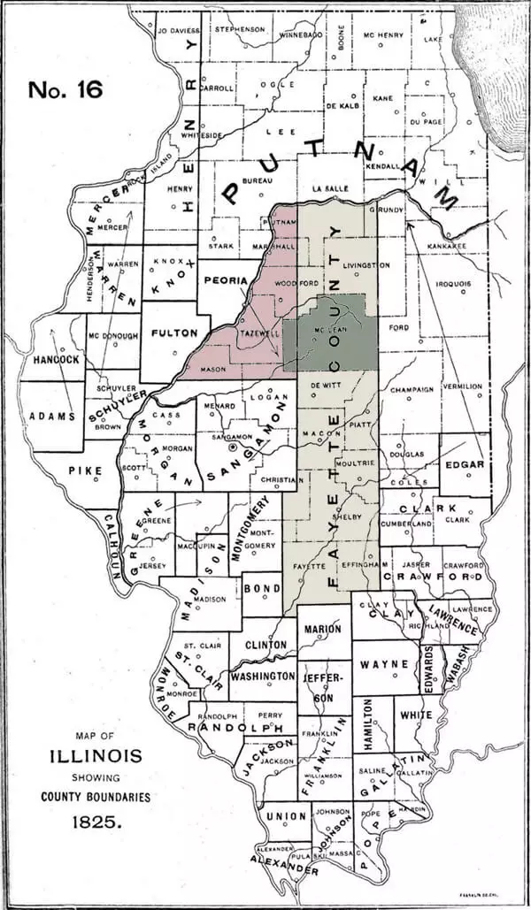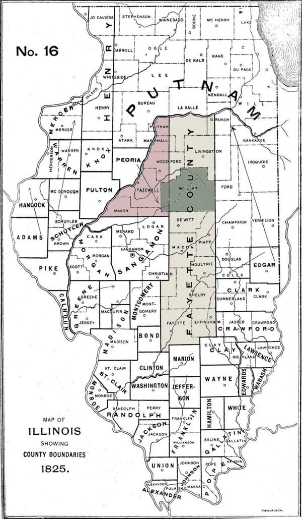 In 1825 the state legislature reduced Sangamon and Fayette counties in size to reflect the growing population. Some residents could now go to Mackinaw to vote, but most still had to travel to Vandalia.