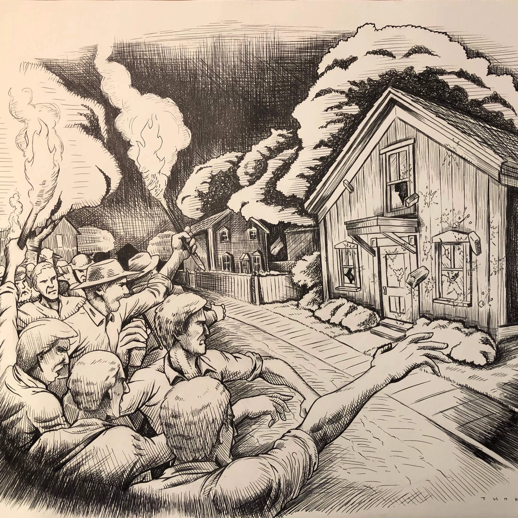 So-called officers of the peace and a number of leading members of Bloomington’s churches soon gathered outside. But their intentions were not good. They proceeded to pelt the business with eggs in objection to the views expressed by those inside.