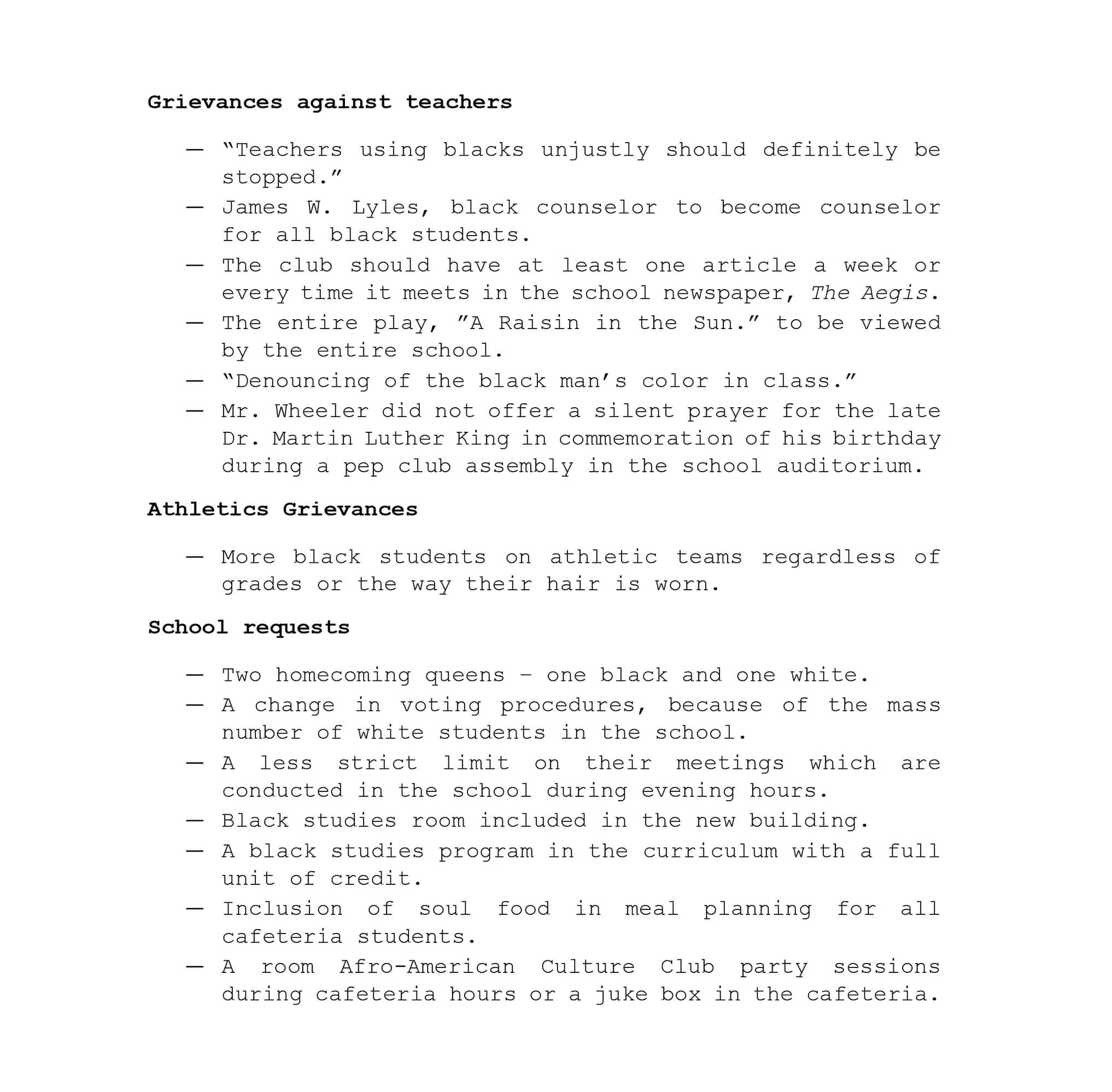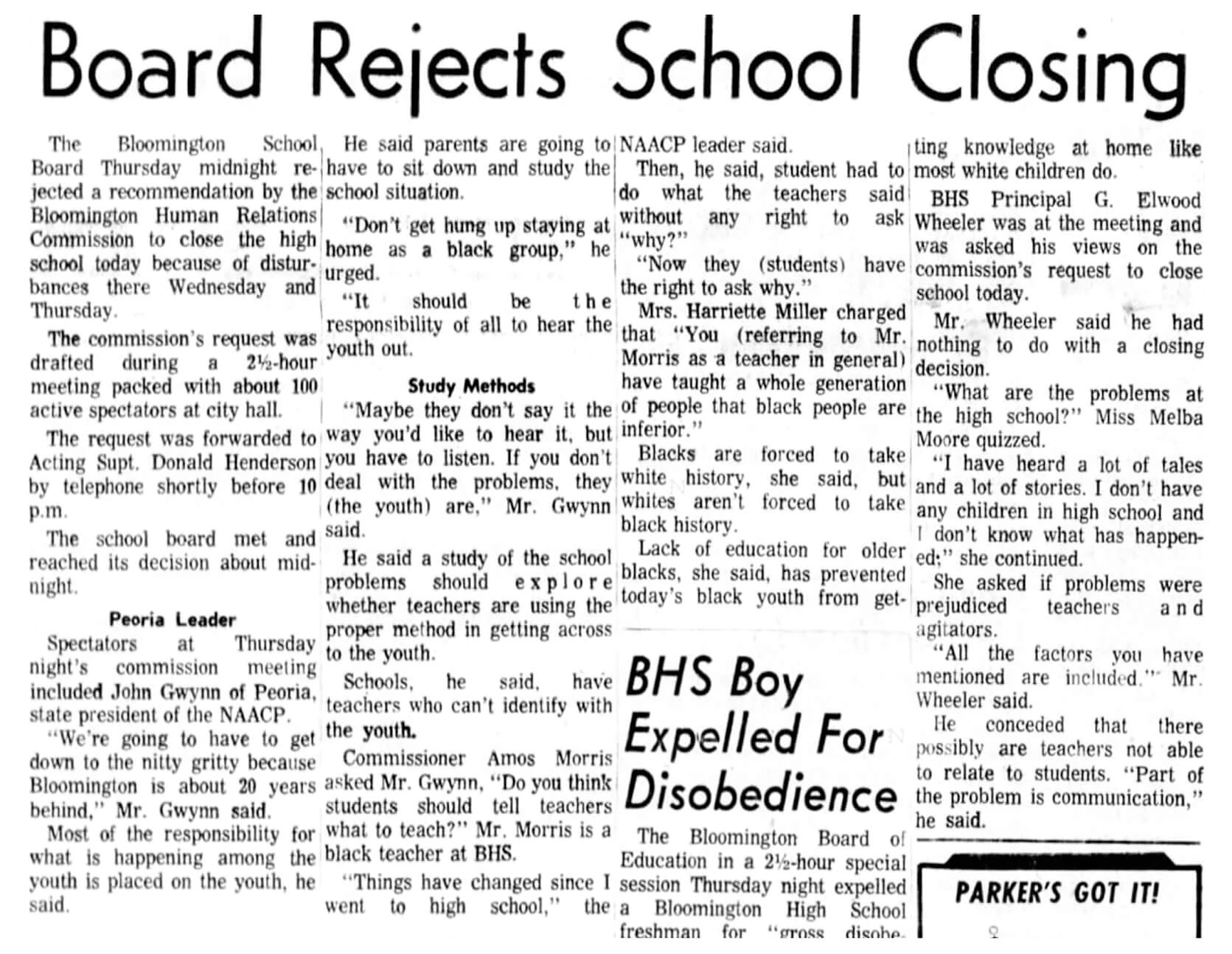They met in the library and developed a list of grievances and requests, which they presented to the school administration and the Bloomington Pantagraph.