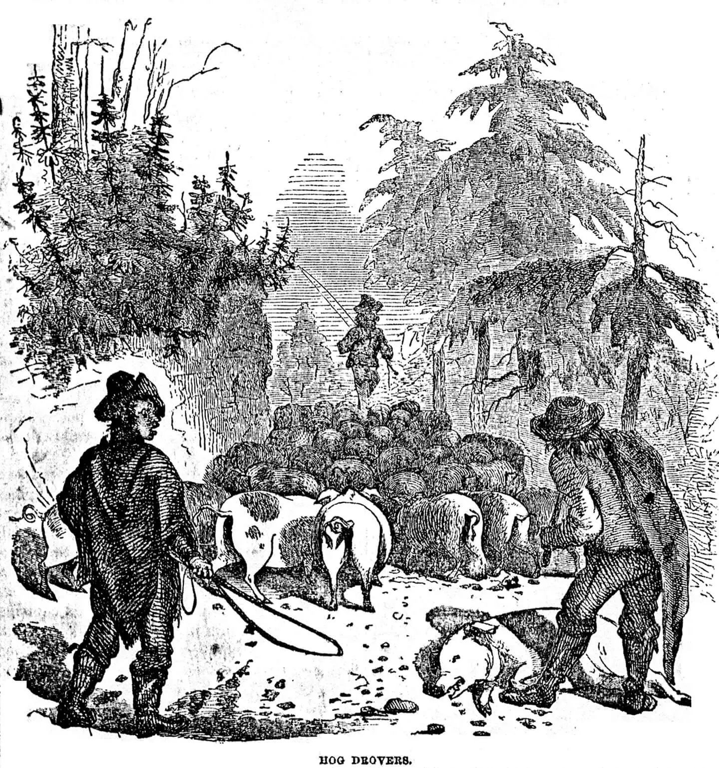 At the Kankakee River the rapids were partly frozen. They cleared the ice, but the hogs refused to go into the water. The drovers built parallel rail fences, and forced the hogs between them and into the river. Both hogs and humans made it to Chicago, but just barely.
