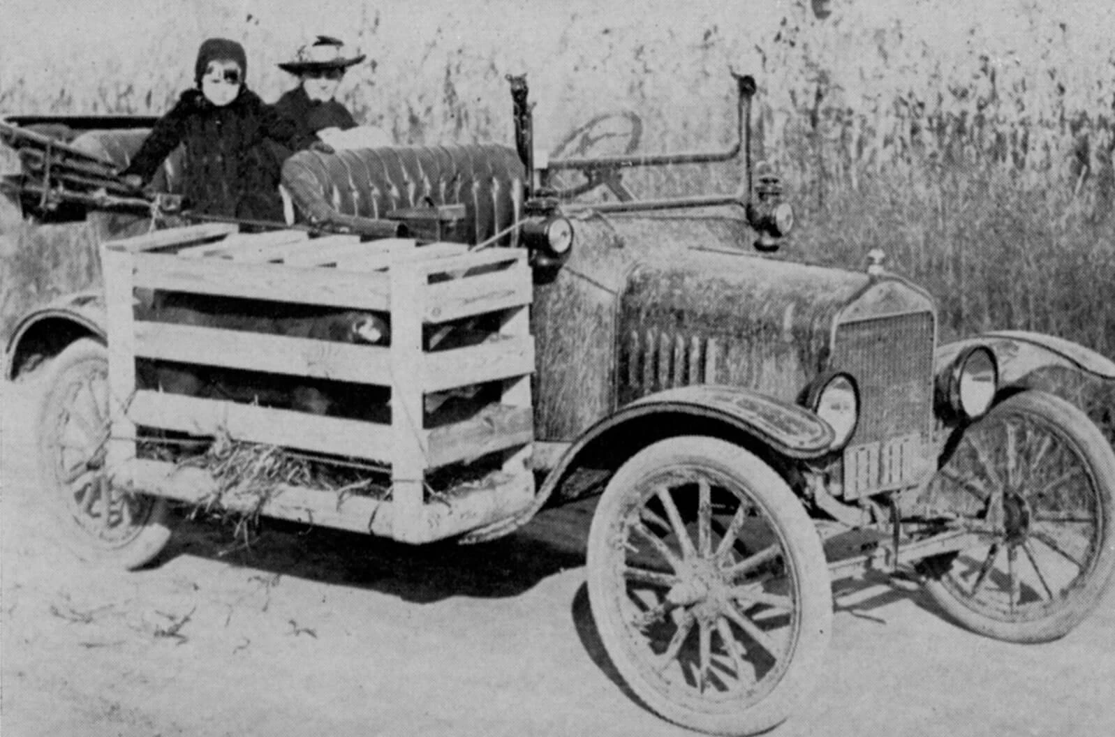 Dave Thompson, the Bureau’s first adviser, was creative in his endeavors. He rigged up his Model-T so that he could transport a hog demonstration to meetings with McLean County farmers.