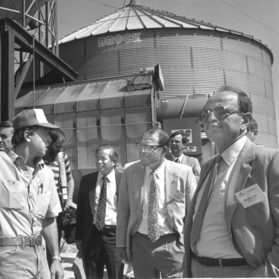 As corn yields increased, grain elevators began to be built along the railroad. These receiving centers revolutionized the handling of bulk grain crops by providing a market hub that was close to the farm—farmers could deliver directly to their local elevator, which stored the grain until it was sent by rail to distant markets.