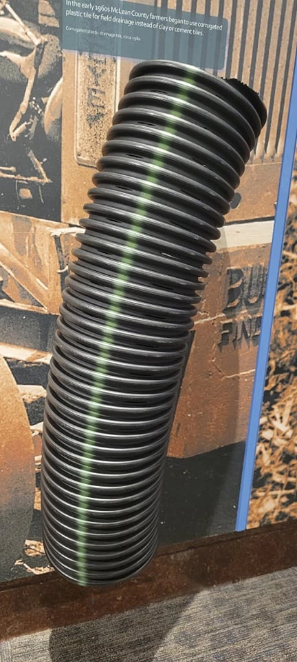 In the early 1960s McLean County farmers began to use perforated plastic tile for field drainage instead of clay or cement tiles.