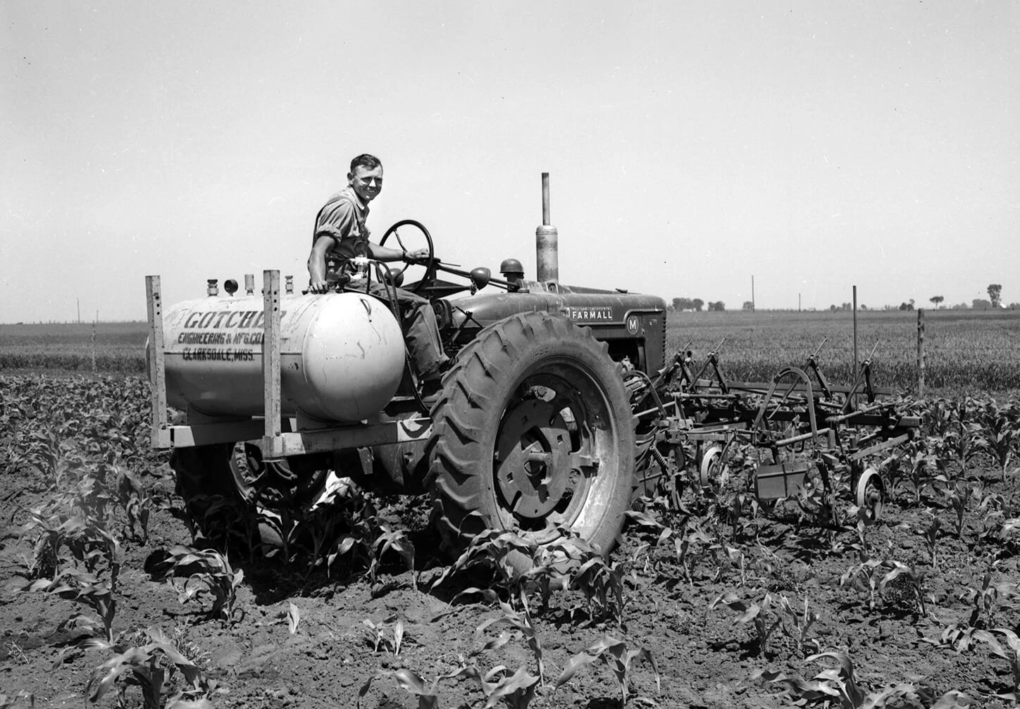 Having read about the application of anhydrous ammonia (a form of nitrogen gas) in the south, both Holder and Miller visited Mississippi cotton farms to see how it was applied.