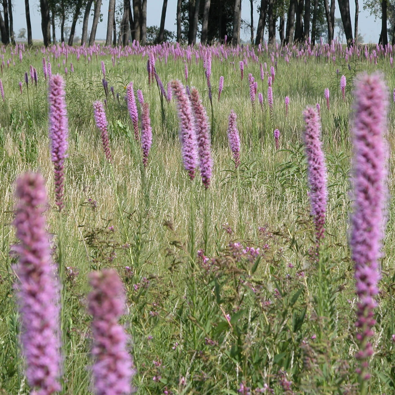 Blazing Star (also called prairie gay feather) is native to eastern North America, and grows in prairies and sedge meadows.