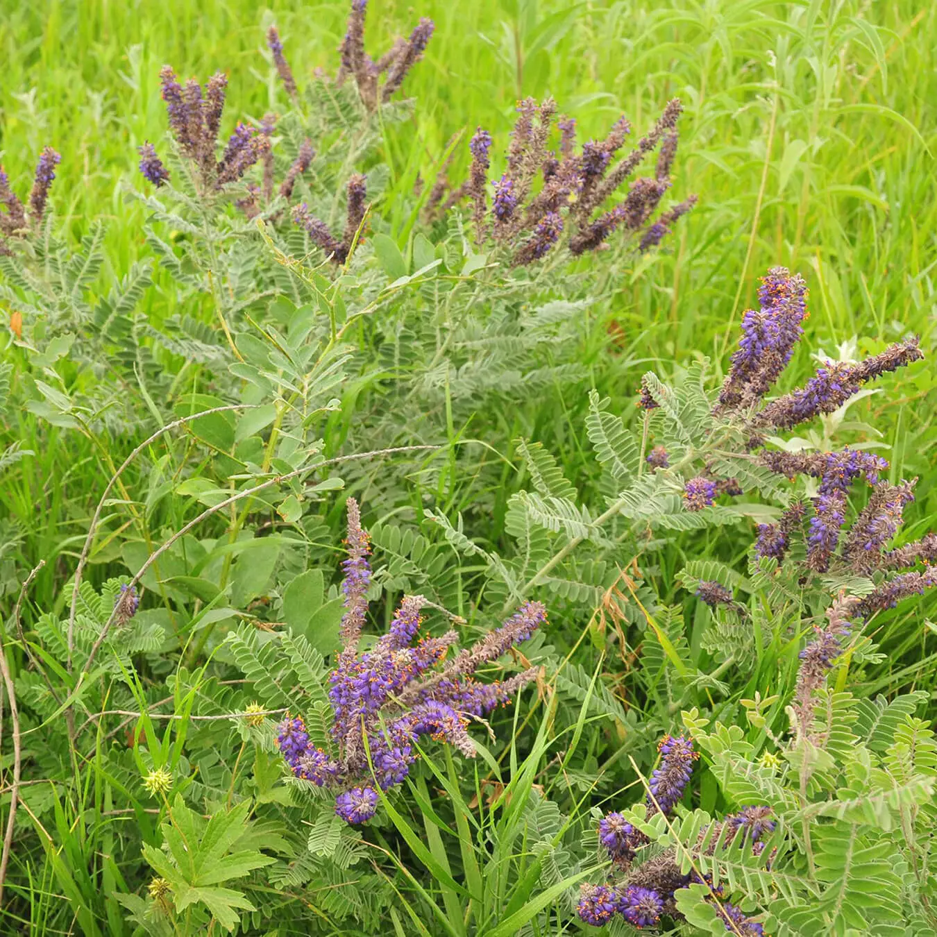 Also known as leadplant, downy indigo bush, prairie shoestring, or buffalo bellows, Amorpha Canescens Pursh is a perennial shrub that is native to North America. It has small purple flowers that bloom from late June to mid-September and roots that extend up to 16' deep.