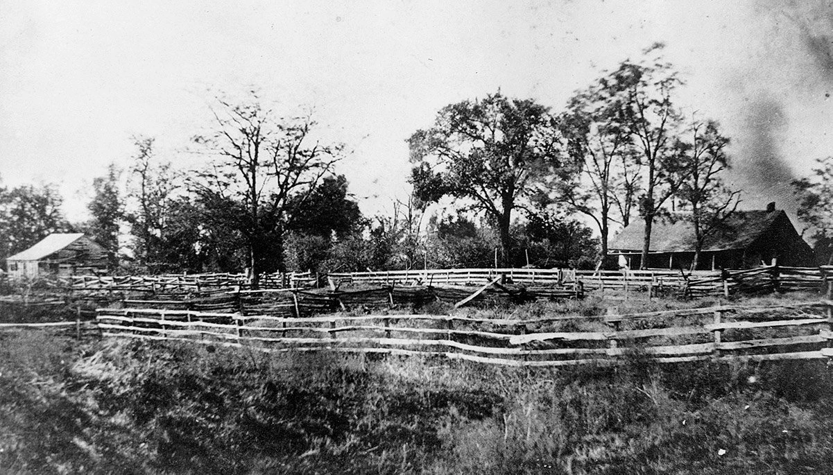 The Thomas Karr family settled in Randolph Township in 1834. With plenty of timber nearby, they built a log home, split rail fencing, and a barn for their animals.