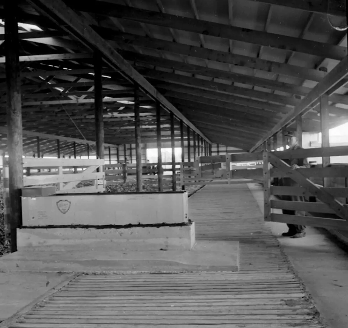 In 1963 Gridley farmer George Stoller and his son Don built a state of the art facility for raising feeder cattle. The 280’ long shed had four penned areas for four ages of steers, and included slotted floors for easy removal of manure. Food and water was brought directly to the livestock.