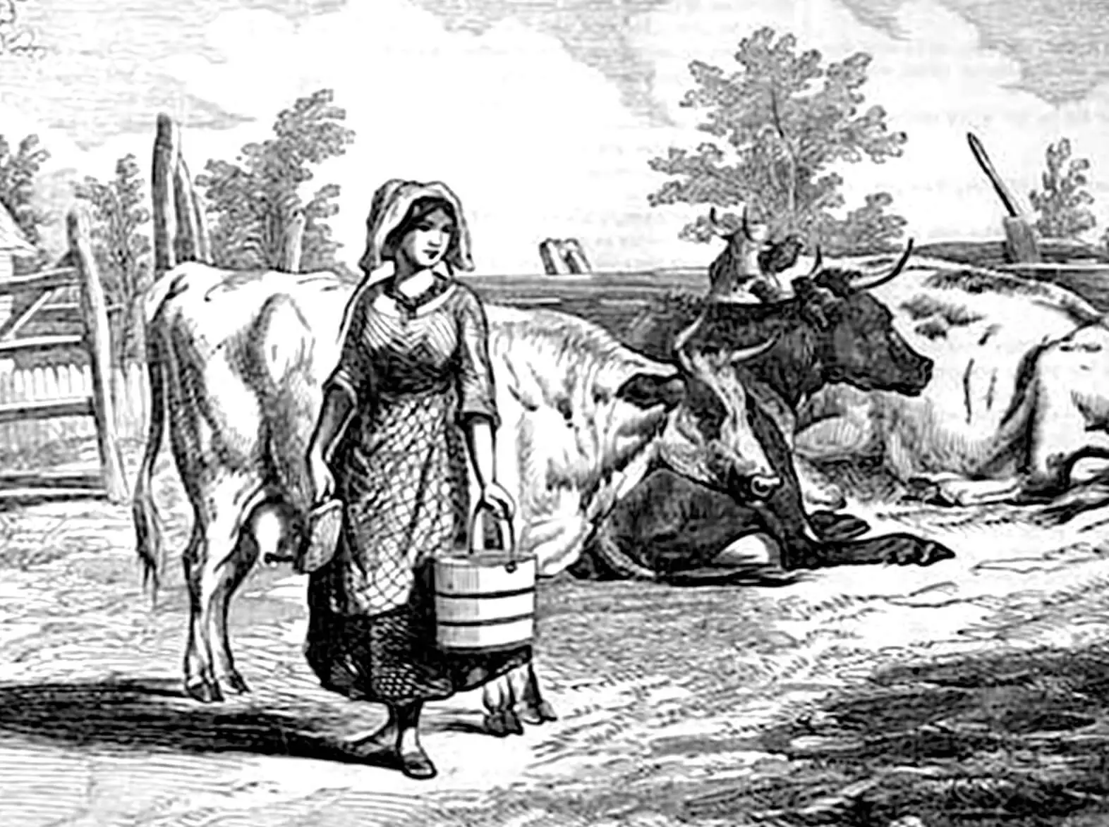 Farm wives were part of the farm’s labor force too. Often they managed one or more cows that they milked by hand.