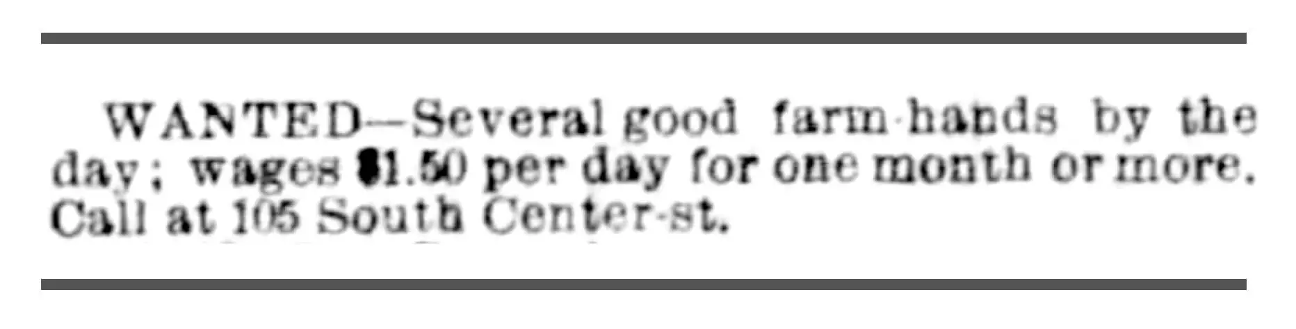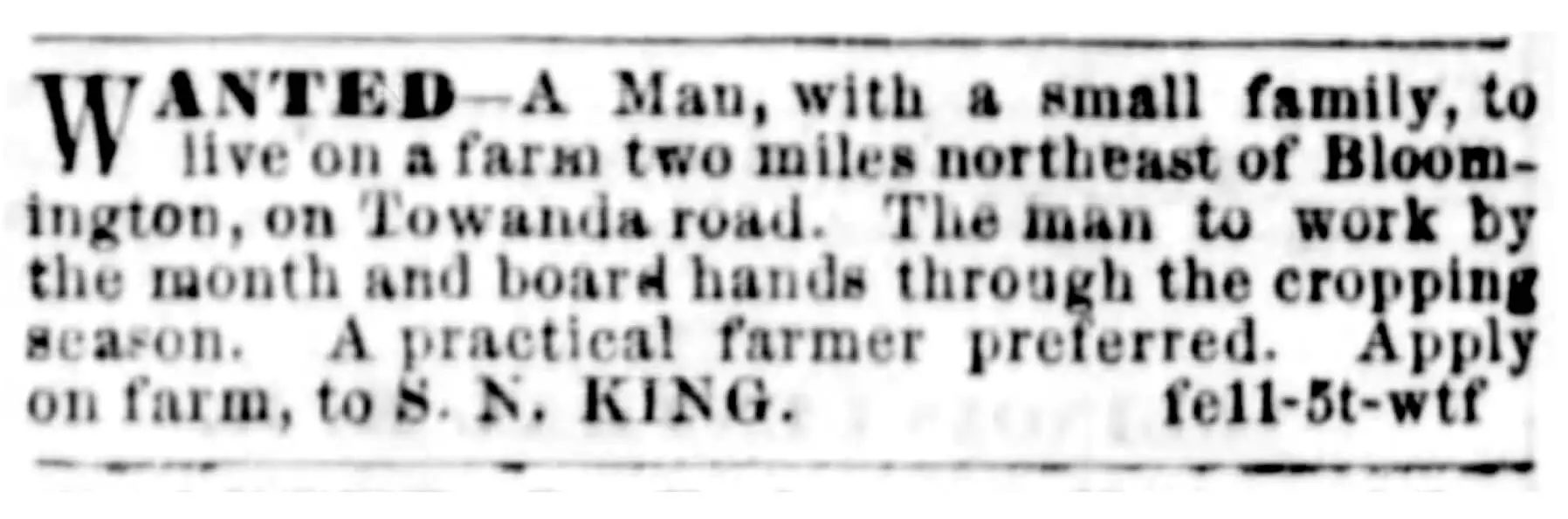 Bloomington’s Pantagraph regularly published advertisements for farm help.