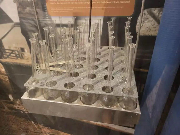 They also had their cows’ milk tested to measure fat content. Samples from each milk cow were put into glass bottles and left to sit in a refrigerator. After 24 hours, the cream had risen to the top where it was measured using calipers and the fat content was calculated.
