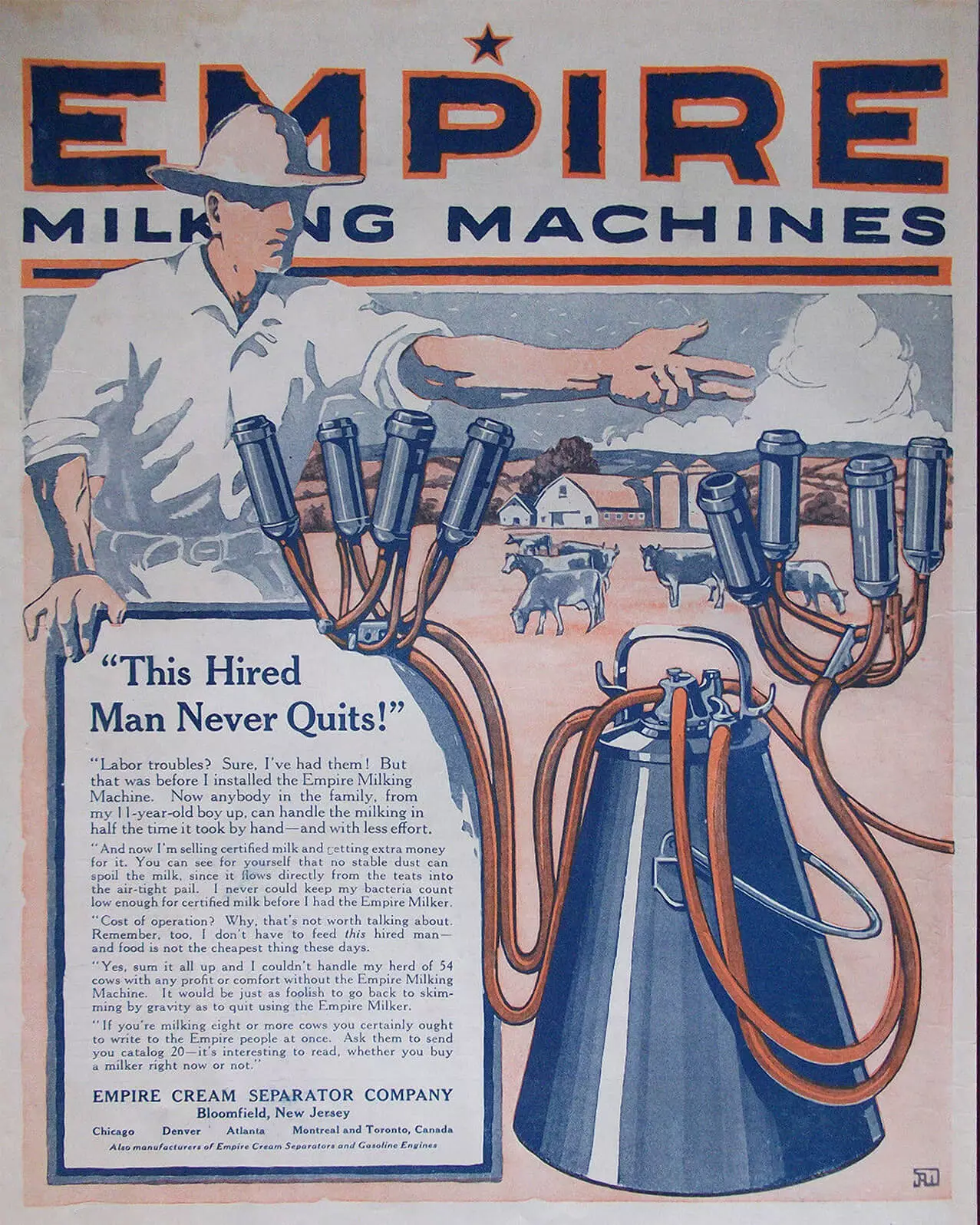 WWI labor shortages left Danvers dairyman Joe Ayres unable to hire help for milking. He purchased his first milking machine that year (1917). Ayres expected the machine to reduce the labor needed to milk his 22 cows.