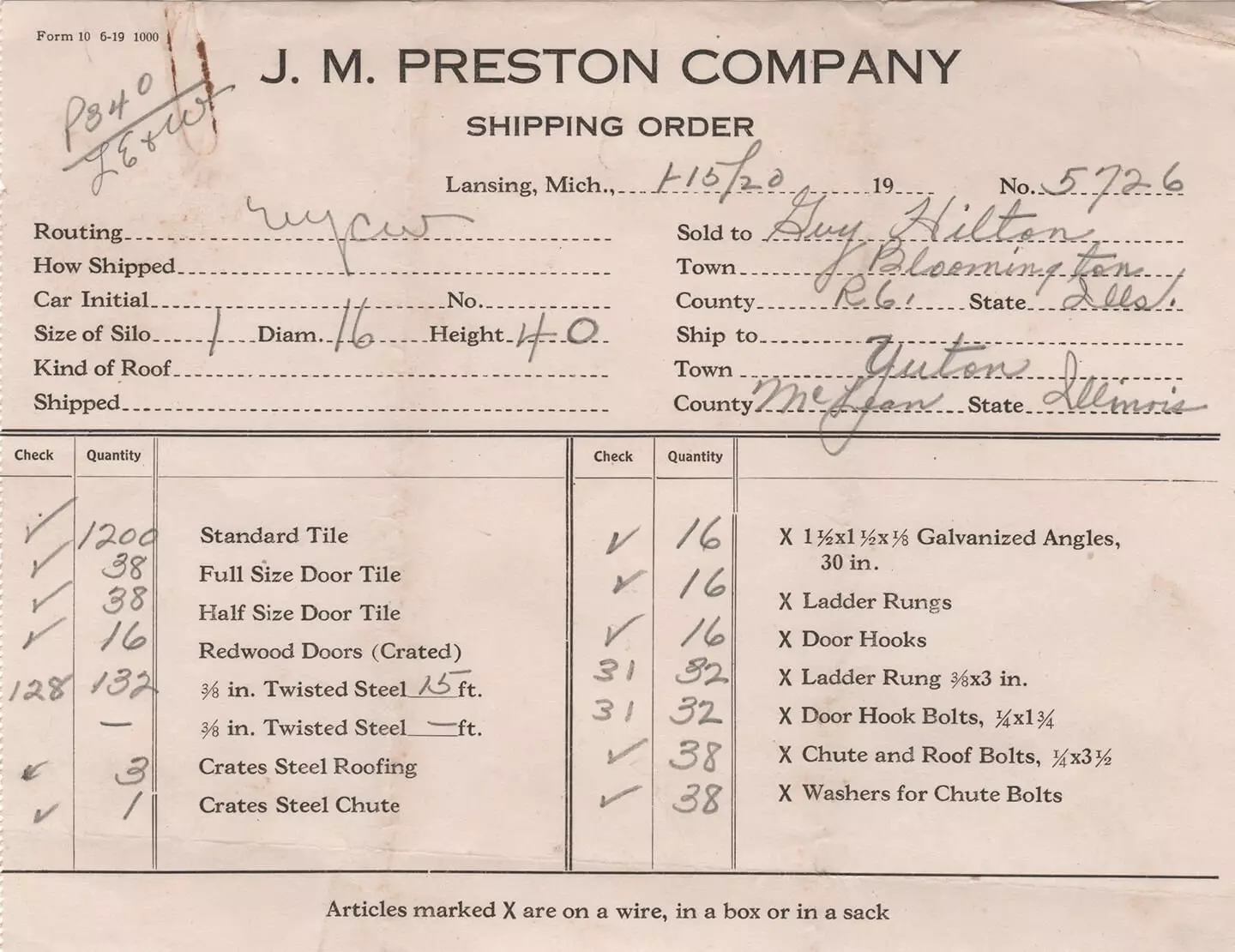Hilton did his research first, deciding on a Preston-Lansing vitrified tile silo. He ordered the tile by mail and had it shipped to Yuton, just west of his farm.