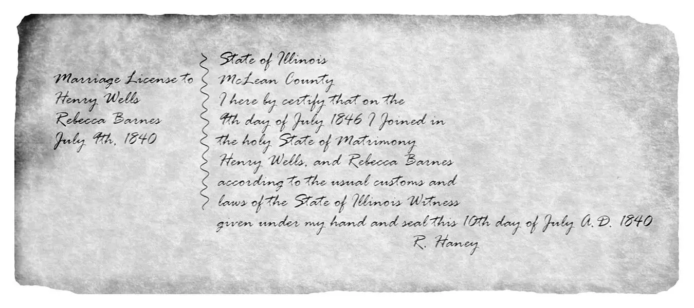 In 1840 Henry Wells married Rebecca Barnes and, as a result, got a steady job.