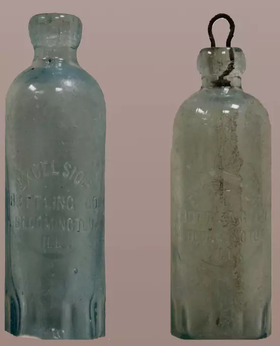 Excelsior soda bottles with patented Hutchison stoppers, circa 1895