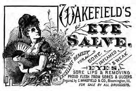 Wakefield's Eye Salve claimed to be "an excellent remedy for sore, inflamed, and weak eyes, sore lips, and removing proud flesh from sores and ulcers."