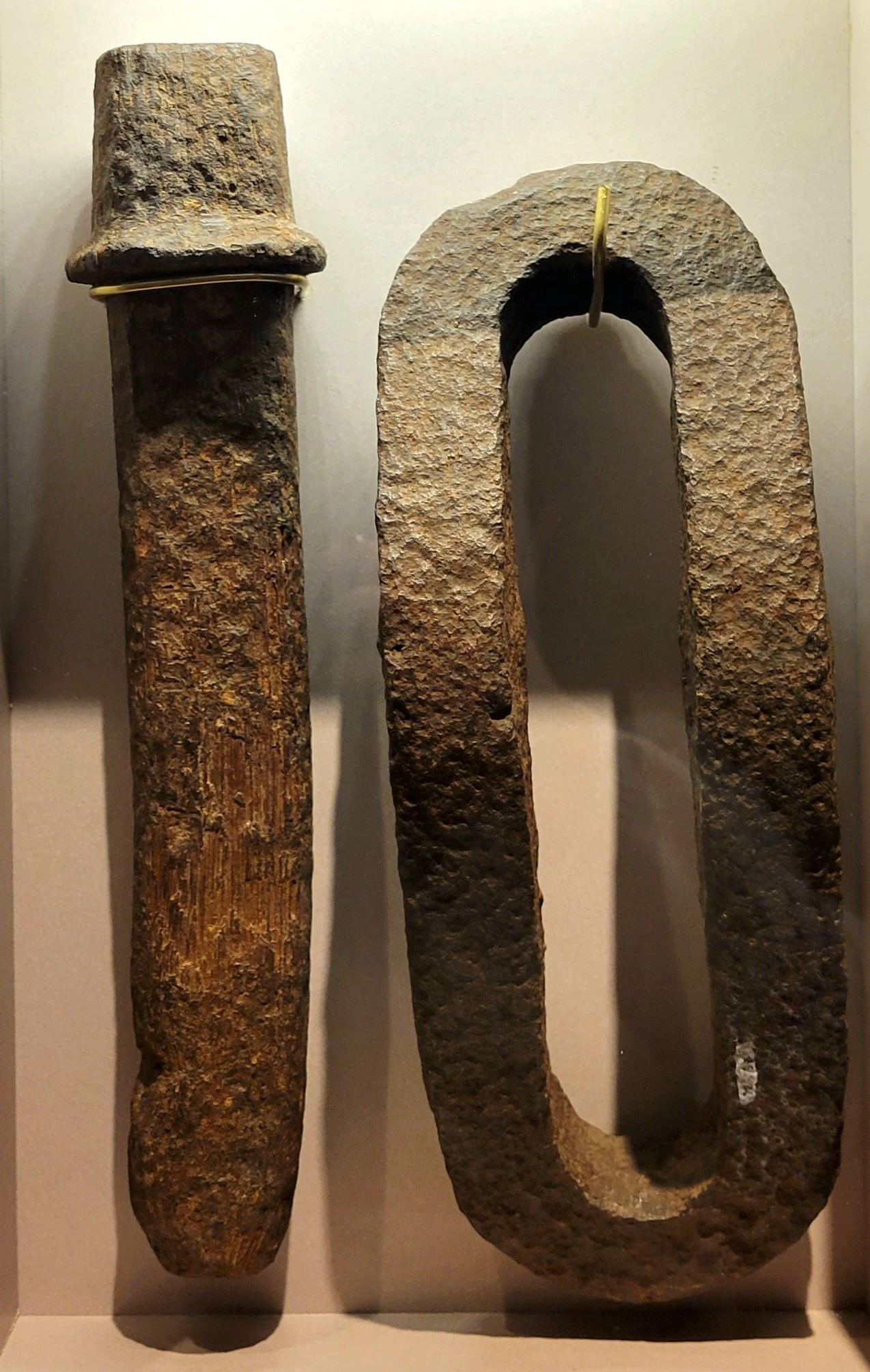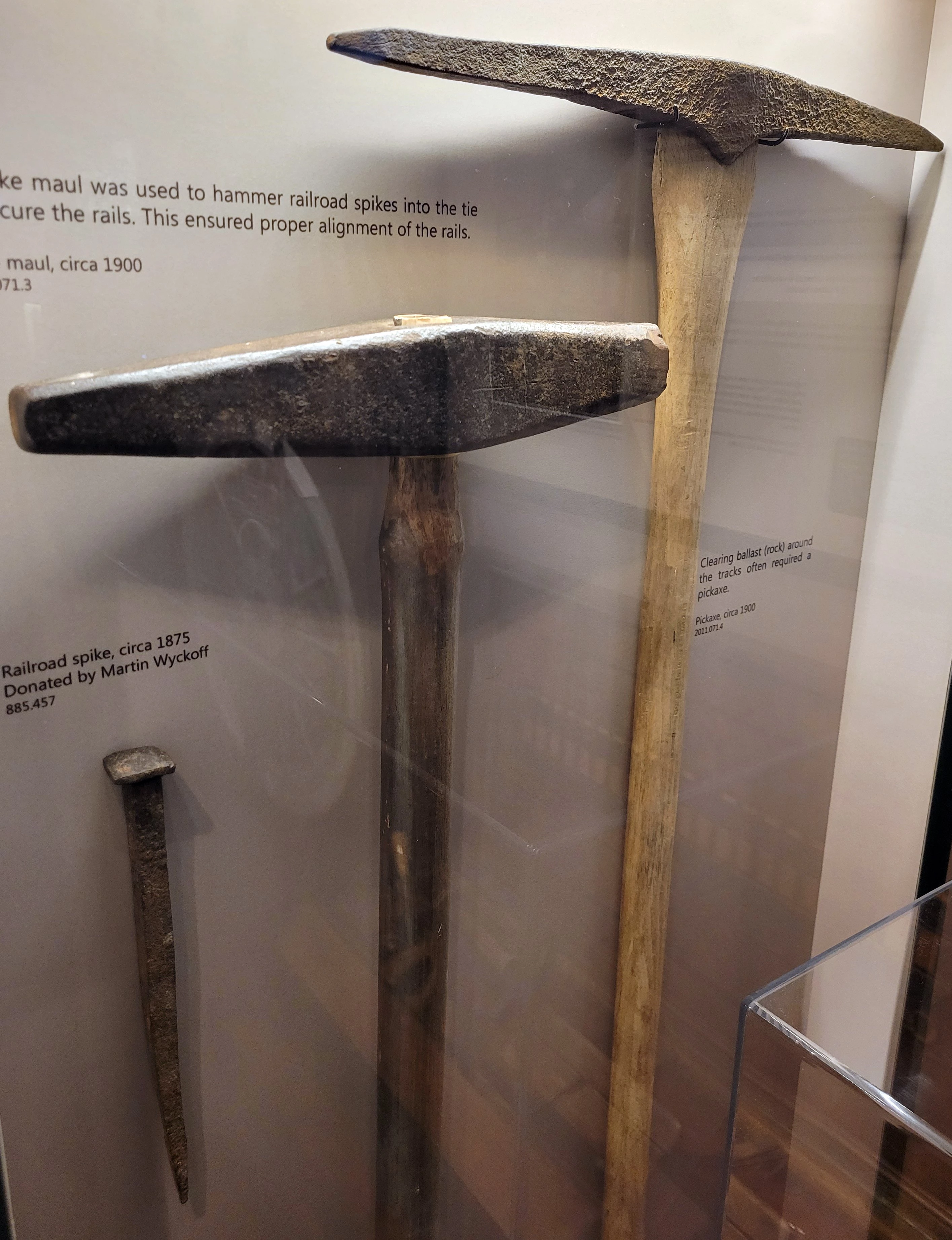 885.457 (railroad spike), 2011.071.3 (spike maul), 2011.071.4 (pickaxe)