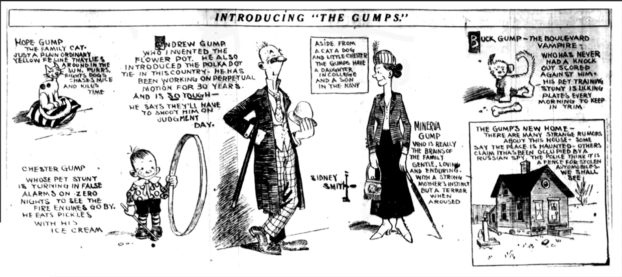 Five days later, on February 12, 1917, in the space formerly occupied by “Old Doc Yak,” newspapers printed the first episode of “The Gumps,” with the fictional family moving into the empty Yak house.