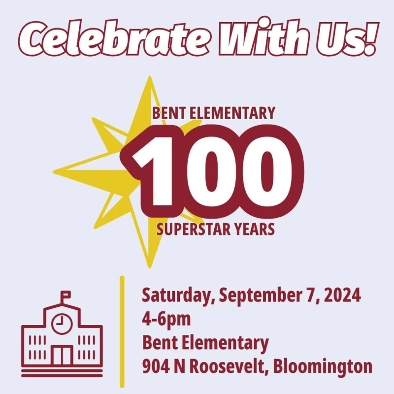 Celebrate 100 years of Bent Elementary on Saturday, September 7 from 4pm - 6pm at Bent. Stop by anytime.