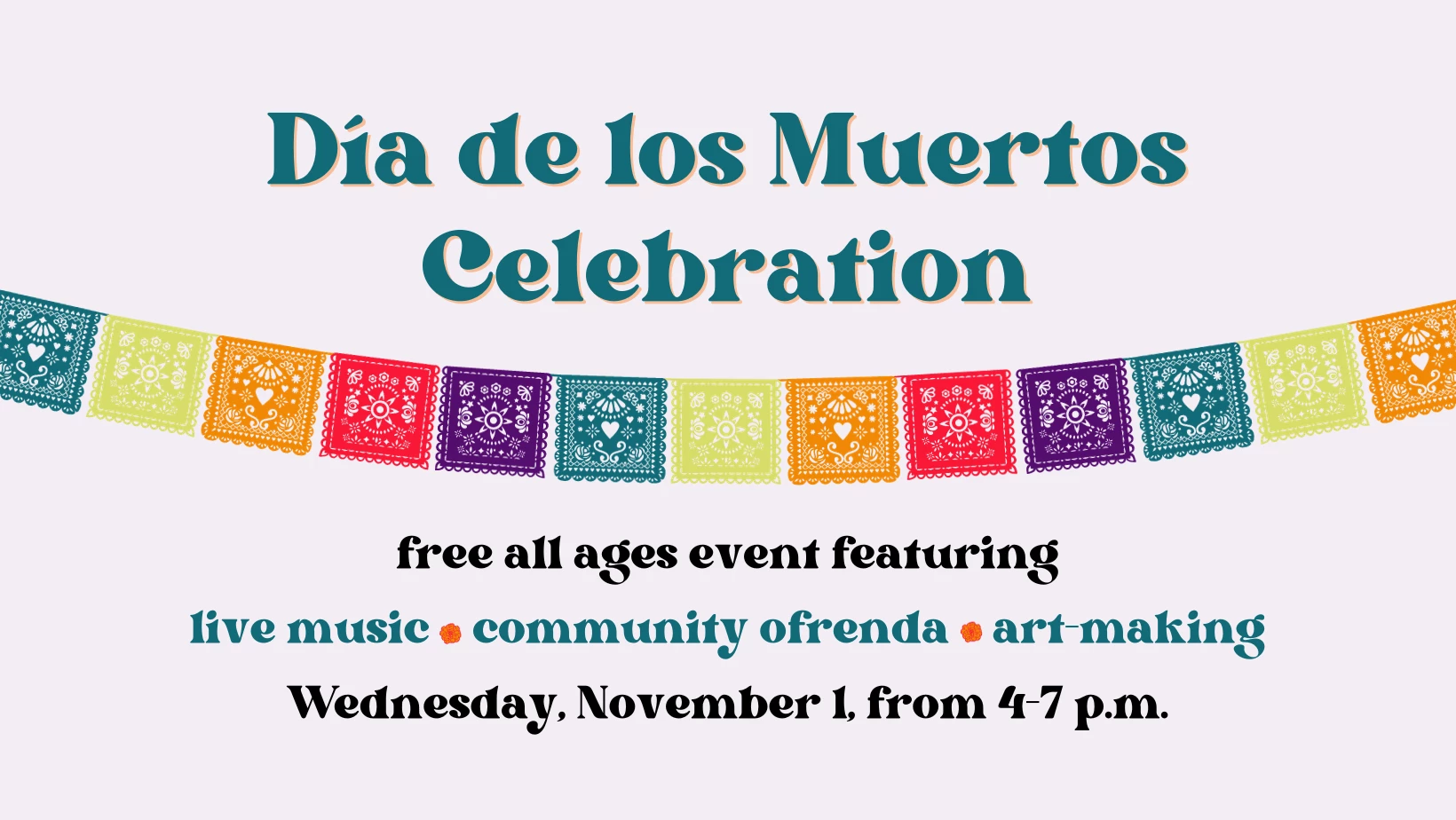 Celebrate Día de Muertos with us on Wednesday, November 1, 2023, from 4-7 p.m. All ages are welcome to this free event featuring live music, art-making, and an interactive community ofrenda.