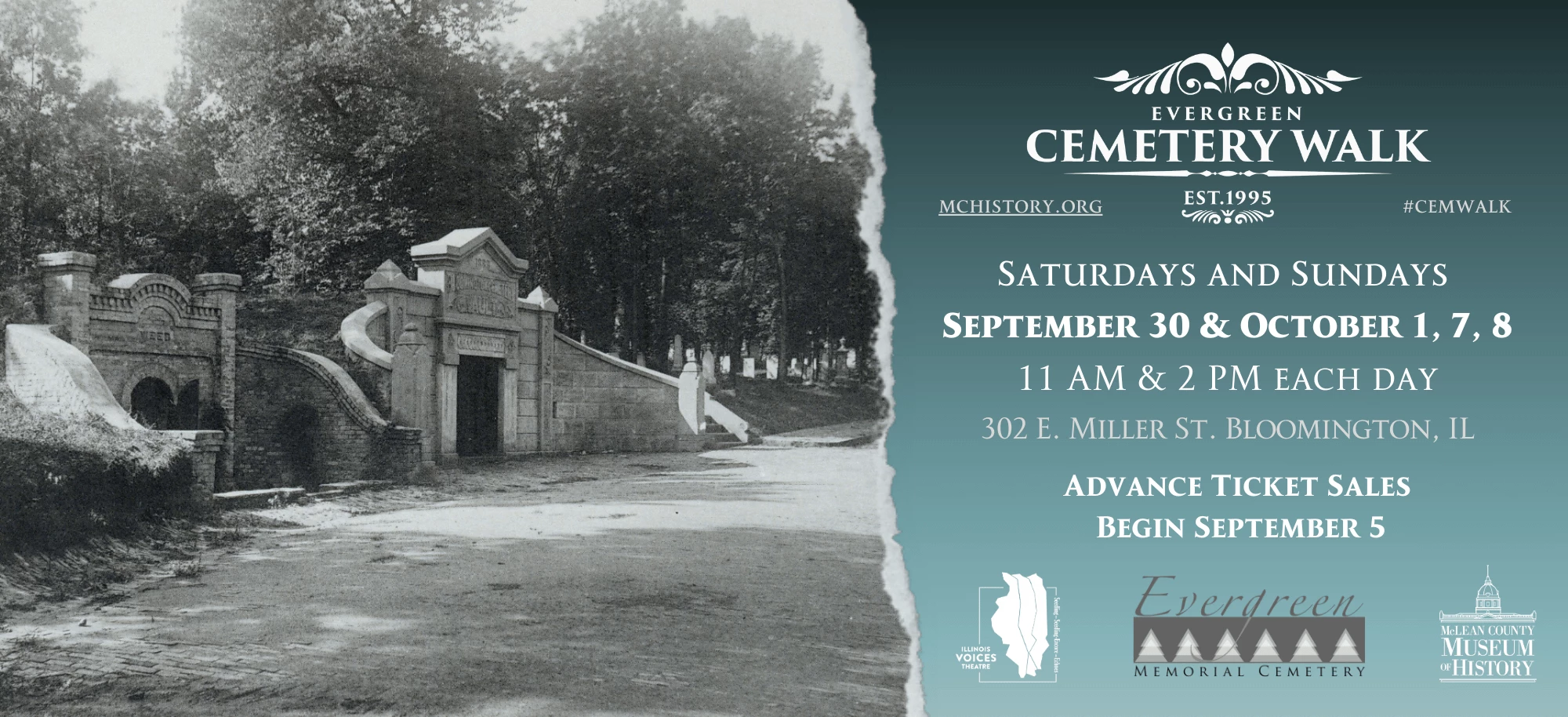 Costumed actors portray people from McLean County's past on the grounds of Evergreen Memorial Cemetery. Their stories illustrate the impact the people of McLean County have had on history—locally, regionally, nationally, and internationally. Put on your walking shoes and bring your family to participate in this fascinating, outdoor theatrical program.