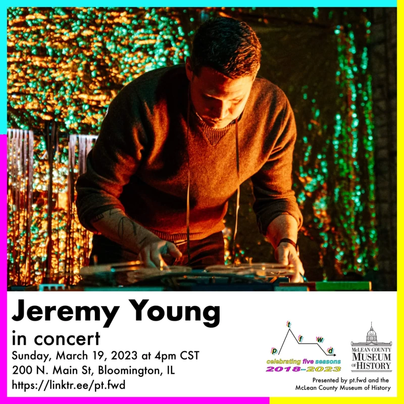 pt.fwd is an independent, artist-run 501c3 non-profit that organizes contemporary music and sonic arts performances in Bloomington-Normal, Illinois. pt.fwd's mission is to celebrate the communal experience of coming together to listen to powerful new sonic art. In partnership with the McLean County Museum of History, pt.fwd promotes new work by local and regional artists in a historic, acoustically curious setting.