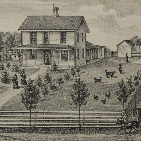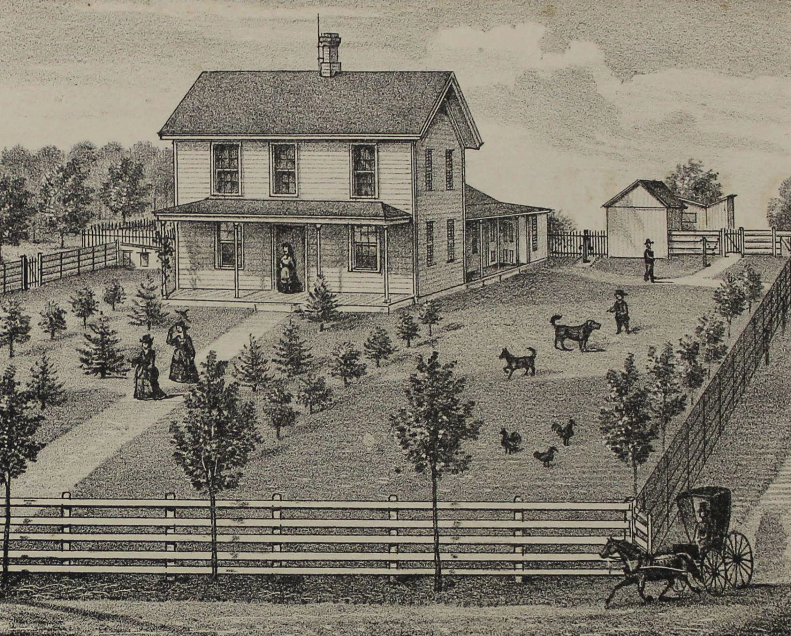 Some twenty years later, Funk built an I-house at the same location as the cabin (both were lost to fire.) This I-house featured paired doors, one for each of the first floor’s two rooms, a layout that was popular at the time. “American farmers were slow to adopt the central hallway which fashionable design dictated; they seem to have regarded it as a waste of space and an impediment to ventilation,” noted Illinois State University historical geographer William D. Walters in his 1997 study of corn farming in McLean County. “By 1850, central hall and single doors had become the rule in McLean County I-houses.”