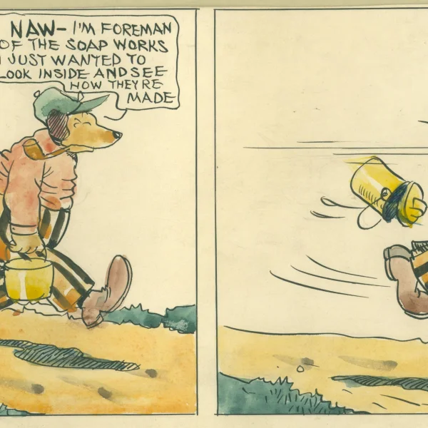 “From the start I was crazy to draw pictures and see how they would look reproduced in the newspapers,” he remembered. Failing to land a full-time position he became an itinerant “chalk talker.” He would travel from town to town, entertaining audiences with light chat and whimsical sketches. When money was short, he would hop a freight train to the next town. “My only equipment was chalk, a blackboard, and nerve—chiefly nerve, no money,” he said of his year-long, cross-country tour. “I saw life in a thousand aspects that have been of help to me since.”
