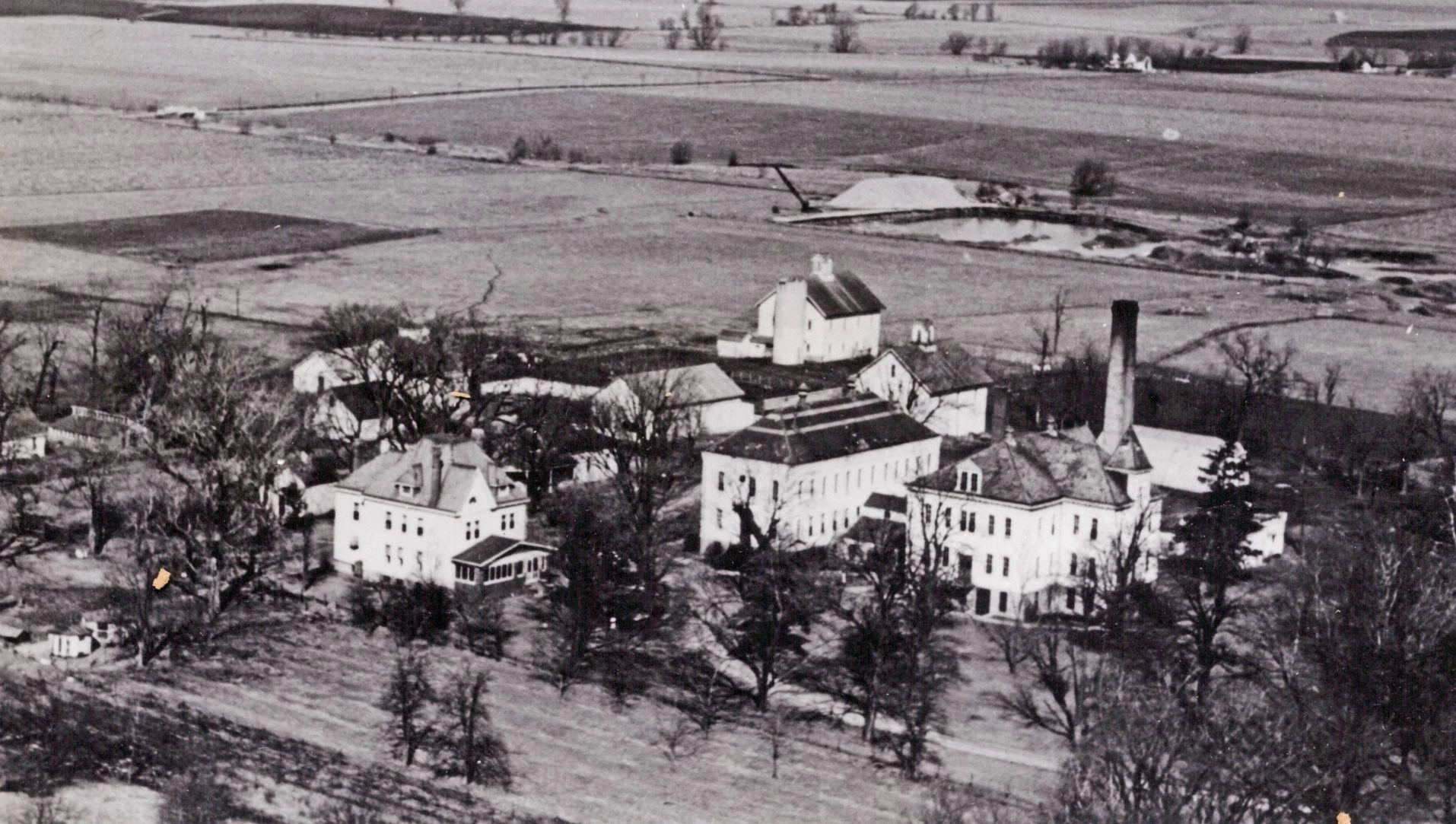 In 1859-1860, the McLean County Board of Supervisors purchased 220 acres from John Grove Myers and established the county’s first permanent poor farm. Additions were made in 1888 (80 acres) and 1904 (62 acres). The buildings, which eventually included a superintendent’s house, residential quarters, washhouse, stables and various outbuildings, were situated on a 20-acre site just west of U.S. Route 51.