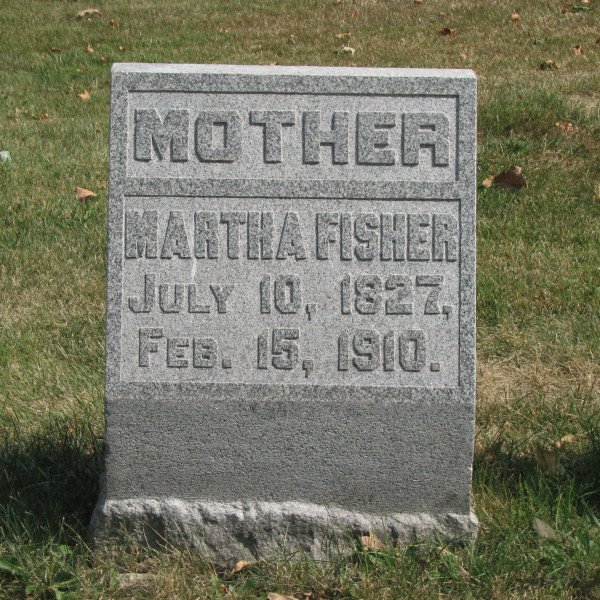 Finally, on February 8, 1845 Ellis married his third wife, Martha Fisher, who was also a sister of his first wife Mary. Martha Fisher Dillon was born on July 10, 1827 in Clinton County, Ohio. She was the daughter of James and Amy Bennett Fisher. Her father James was a farmer and decided to move his family west where there was much land to be had. Martha and her family came to Illinois in 1828 when she was just about a year old and they too settled in Tazewell County. Ellis and Martha had five children: one child that died in infancy, Alpheus who died at age two, Adolphus, Sarah and Emma. Ellis and Martha would also raise two of his nephews, Levi and Isaiah, whose parents died of cholera when they were very young.