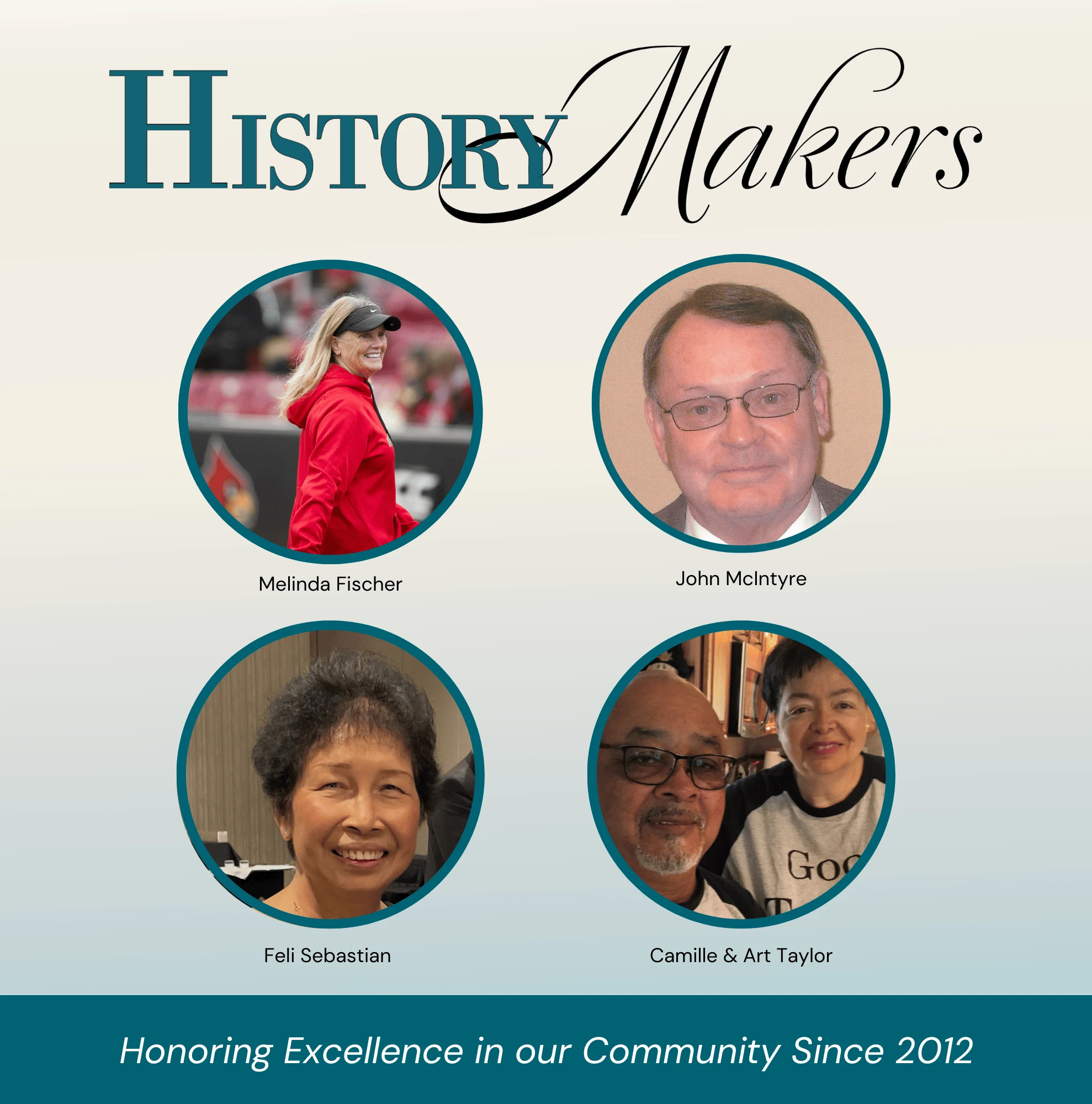 2026 Honorees are Melinda Fischer, John McIntyre, Feli Sebastian, Camille & Art Taylor.